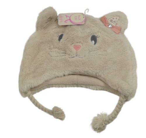 Nové - Pudrová chlupatá podšitá čepice s čumákem - kočka