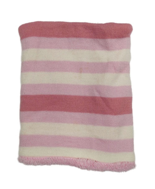 Světlerůžovo-bílo-starorůžový pruhovaný pletený zateplený nákrčník