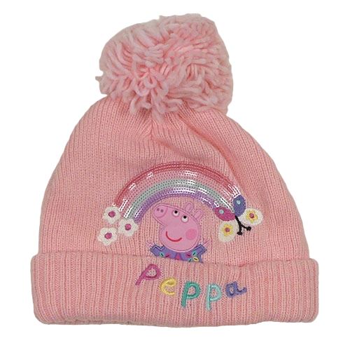 Světlerůžová pletená čepice s Pepinou a bambulí vel. 3-6 let