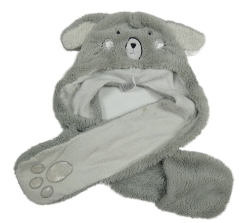 Šedá chlupatá čepice se šálou- králík George vel.104-128