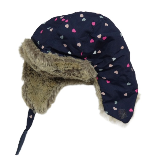 Tmavomodrá šusťáková zateplená beranice se srdíčky a kožešinou H&M