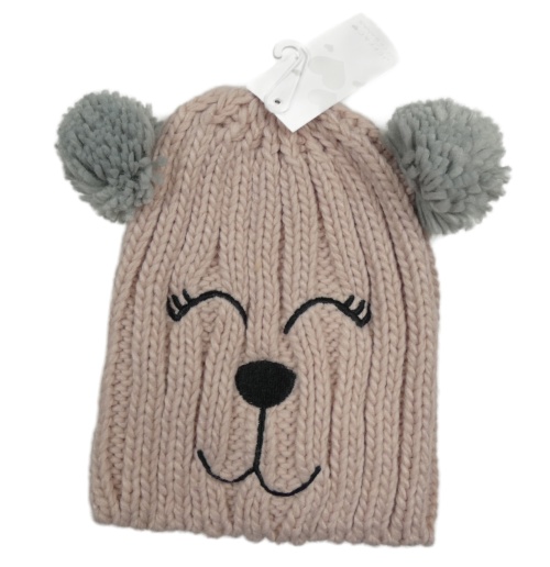 Nové - světlerůžová pletená čepice s čumákem a bambulemi