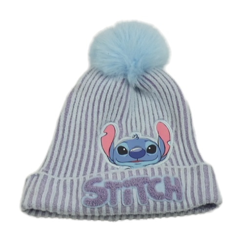 Světemodro-fialová pruhovaná čepice se Stitchem a bambulí Primark