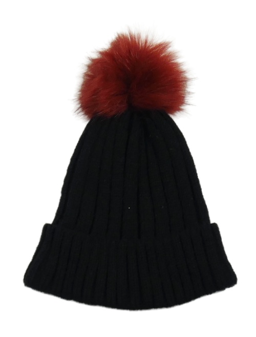 Černo-vínová čepice s bambulí