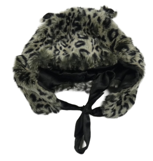 Šedo-béžovo-černá kožešinová čepice s leopardím vzorem