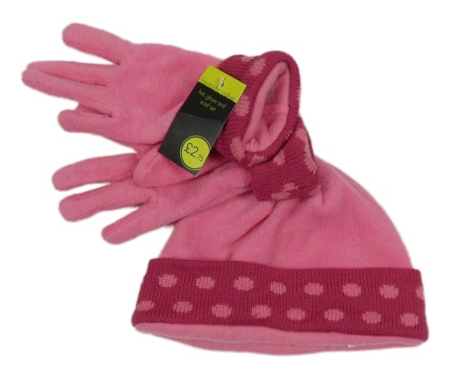 Nové - 2 set - růžová fleecová čepice + fleecové prstové rukavice