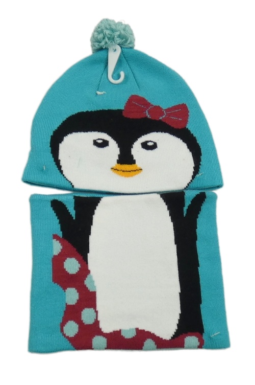 Nové - 2set - Modrá čepice s tučňákem + nákrčník Columbia