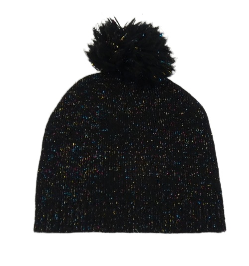 Černá třpytivá čepice s bambulí