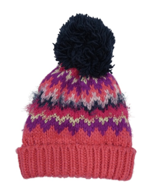 Růžovo-tmavomodrá vzorovaná čepice s bambulí Next