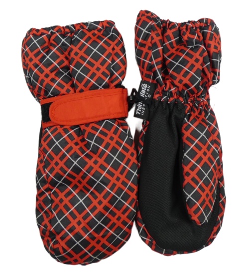 Červeno-černé kárované šusťákové zimní funkční palcové rukavice Lupilu