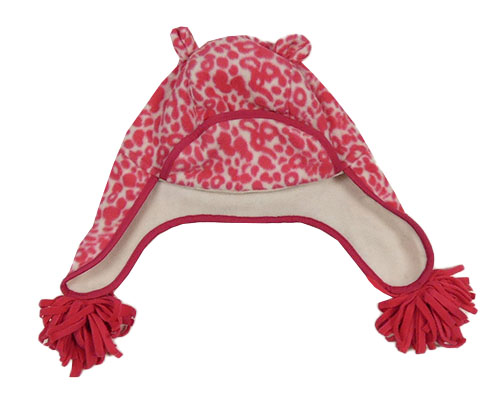 Bílo-tmavorůžová vzorovaná fleecová čepice s oušky a třásněmi Debenhams