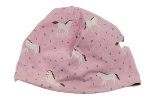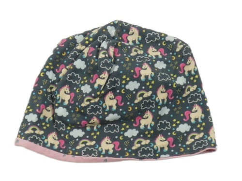 Světlerůžová bavlněná oboustranná čepice s jednorožci