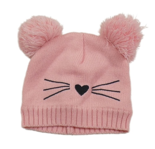 Růžová čepice s čumákem a bambulemi