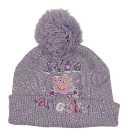 Lila třpytivá pletená podšitá čepice s Peppou a bambulí