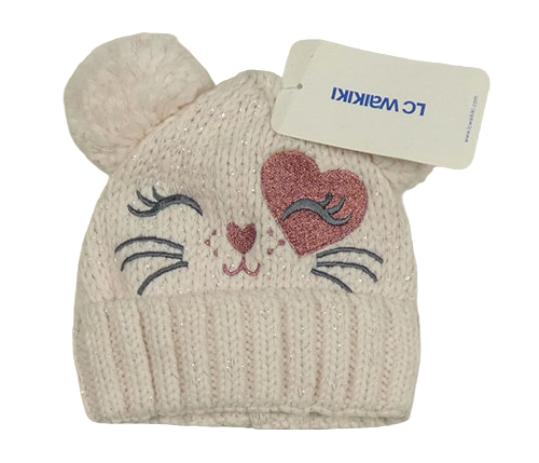 Nové - Světlerůžová třpytivá pletená čepice s čumákem a bambulemi LC Waikiki