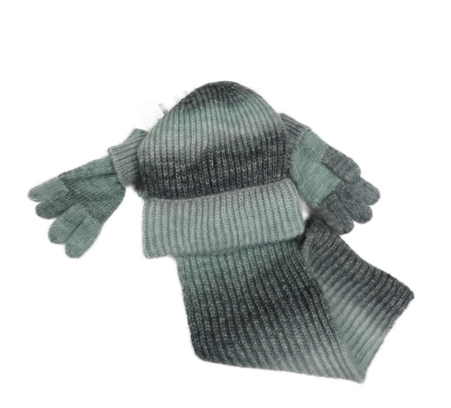 Nové - 3set - Šedo-tmavošedá pruhovaná pletená čepice + šála + rukavice F&F
