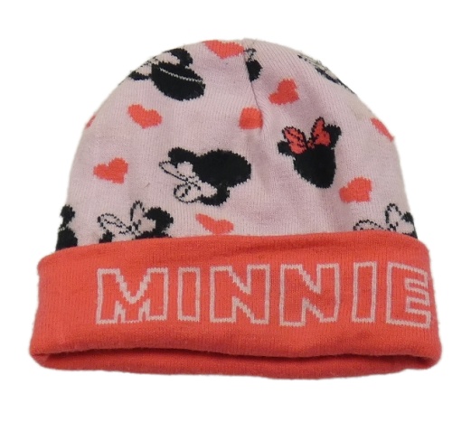 Světlerůžovo-korálová čepice s Minnie a srdíčky Disney