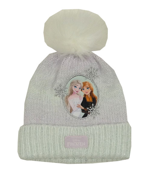 Lila-mátová třpytivá vlněná čepice s Frozen a bambulí Disney
