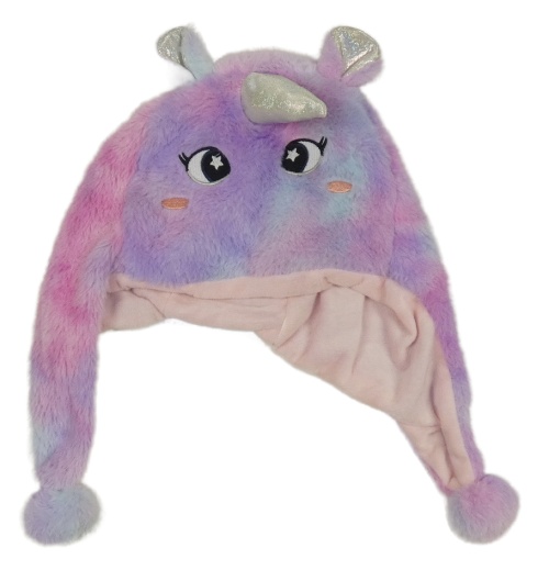 Fialovo-růžovo-světlemodrá chlupatá čepice - jednorožec