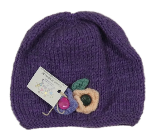 Nové - Fialovo-šedá pletená čepice s kytičkami