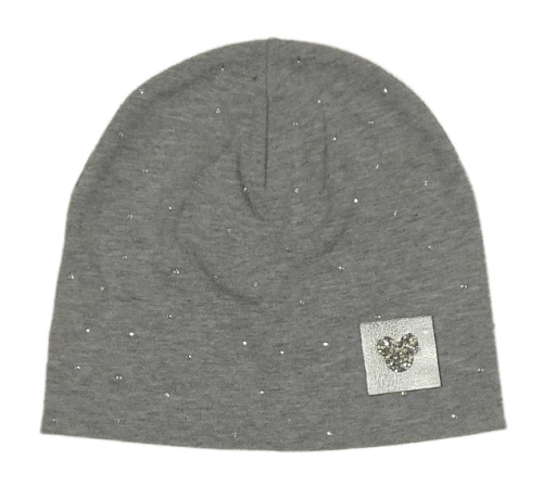 Šedá melírovaná čepice s kamínky a nášivkou
