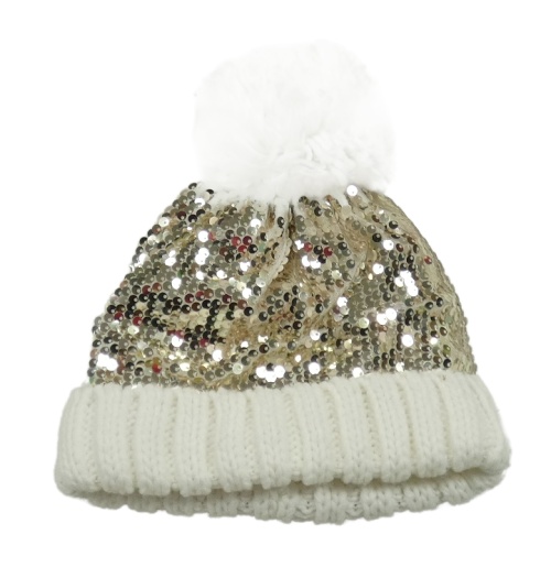 Bílá pletená čepice s flitry a bambulí