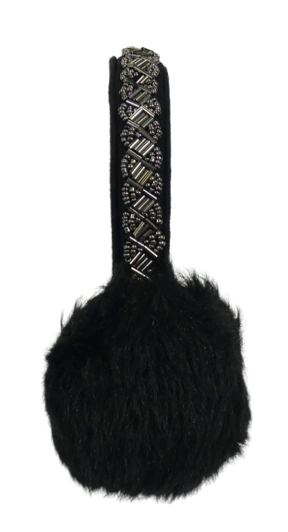 Černé chlupaté klapky na uši s korálky