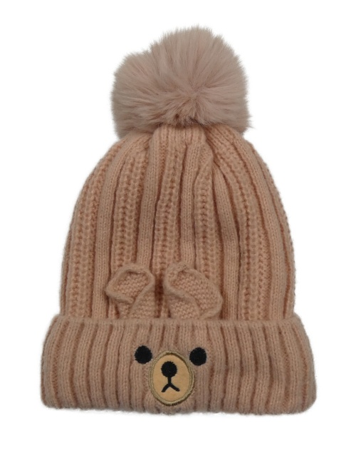 Světlerůžová pletená zateplená čepice s čumákem a bambulí