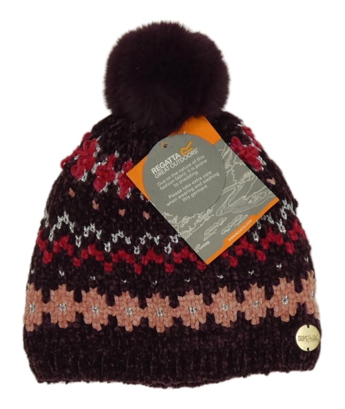 Nové - fialovo-růžová vzorovaná žinylková podšitá čepice s bamublí Regatta