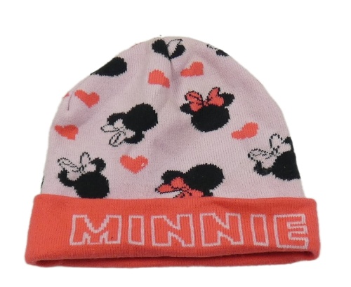 Světlerůžovo-jahodová čepice s Minnie a srdíčky Disney