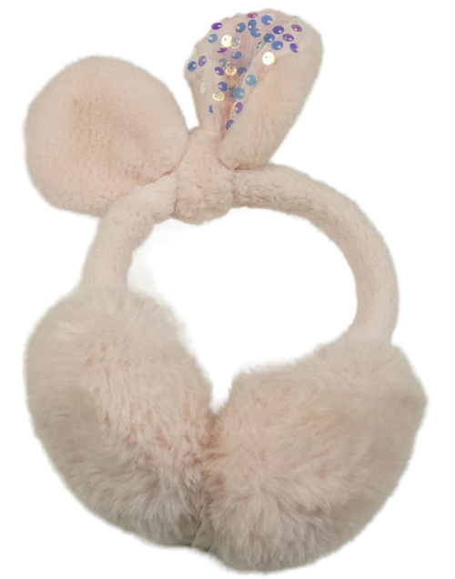 Světlerůžové chlupaté klapky na uši s oušky
