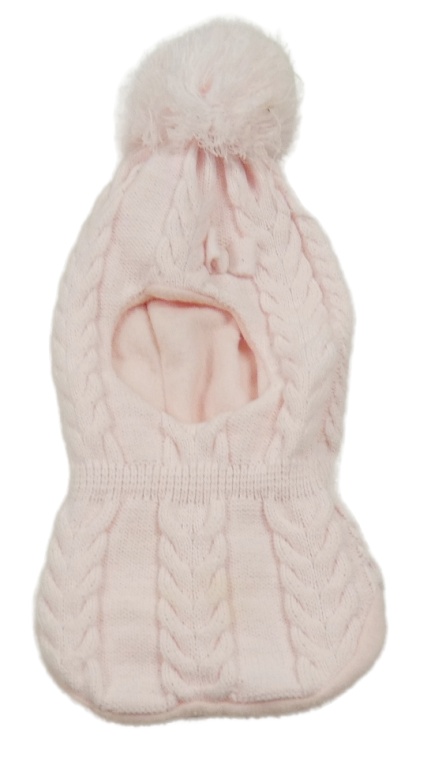Světlerůžová pletená kukla s bambulí