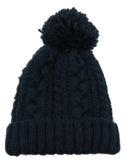 Tmavomodrá vzorovaná pletená zateplená čepice s bambulí C&A