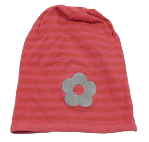 Růžová pruhovaná čepice s květem Tchibo