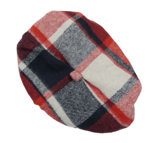 Červeno-bílo-tmavomodrý kostkovaný baret