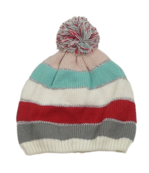 Barevná pruhovaná třpytivá pletená čepice s bambulí