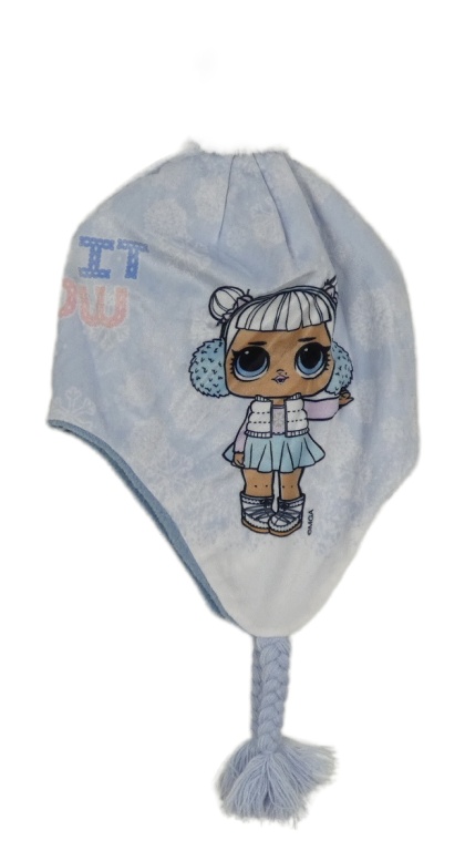 Světlemodrá plyšová čepice s L.O.L. SURPRISE! a bambulí