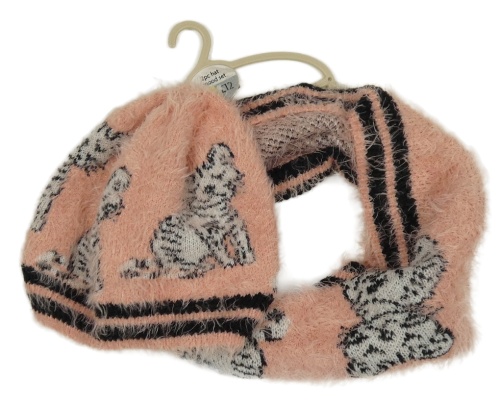 Nový - 2Set - Broskvová chlupatá čepice s kočičkami a pruhy + nákrčník Next