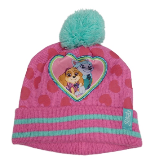 Růžová vzorovaná pletená čepice s Tlapkovou patrolou a bambulí Nickelodeon