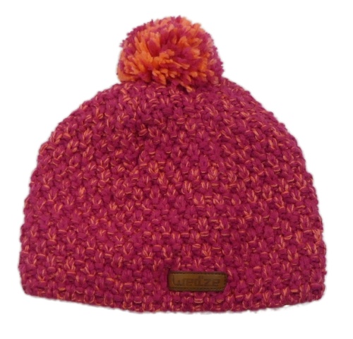 Tmavorůžovo-světleoranžová melírovaná vzorovaná funkční pletená čepice s bambulí Wed'ze