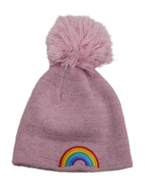 Růžová třpytivá čepice s duhou a bambulí George vel.104-128