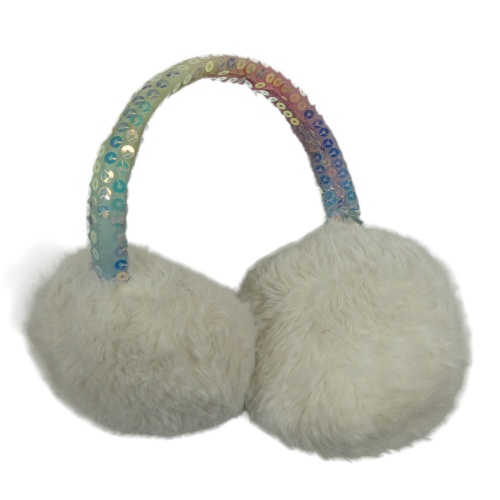 Bílo-barevné kožešinovo/flitrové klapka na uši