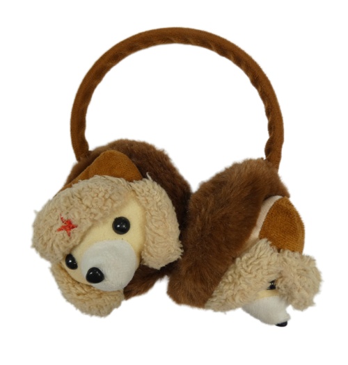 Hnědé chlupaté klapky na uši s medvídky