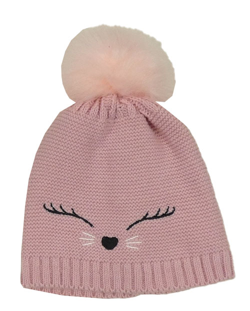 Růžová pletená čepice s čumákem a bambulí Lily & Dan
