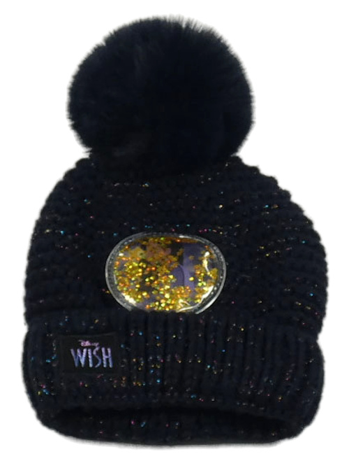 Tmavomodrá třpytivá pletená čepice s nášivkou a bambulí - Přání Disney