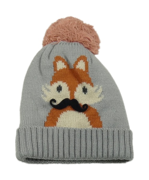 Šedá čepice s lišákem a bambulí