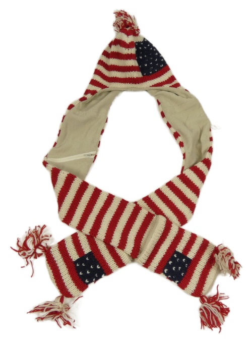 Červeno-béžová pruhovaná vlněná podšitá čepice se sálou
