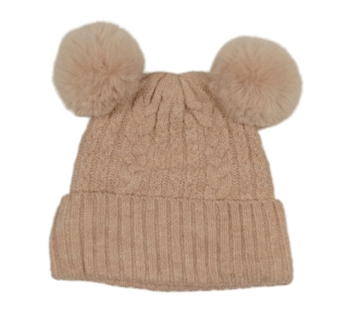 Růžová pletená čepice s bambulemi F&F
