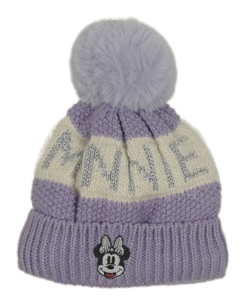 Fialovo-bílá vzorovaná žebrovaná čepice s Minnie a bambulí George