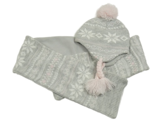 2set - Šedá vzorovaná pletená čepice s bambulí a třásněmi + šála Primark